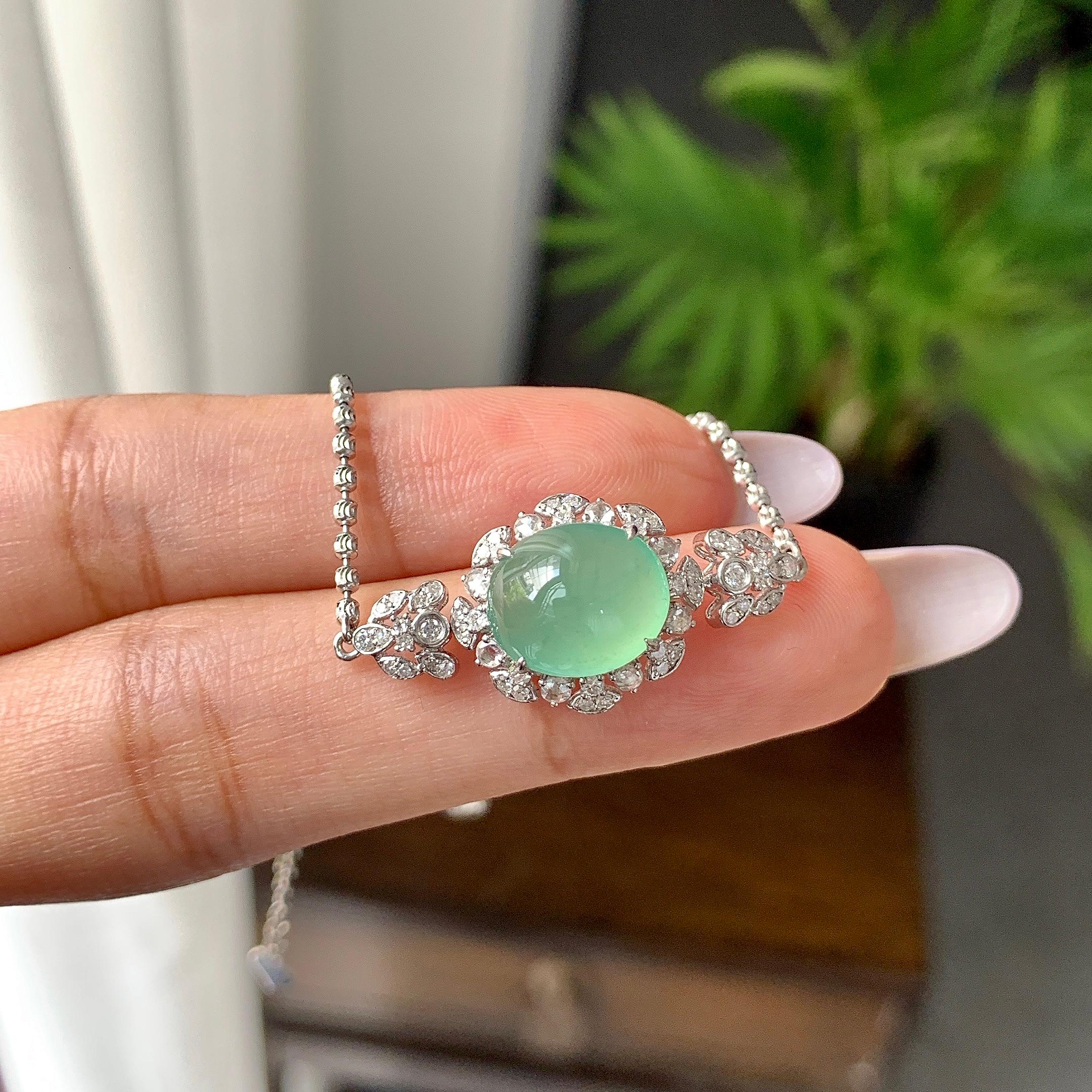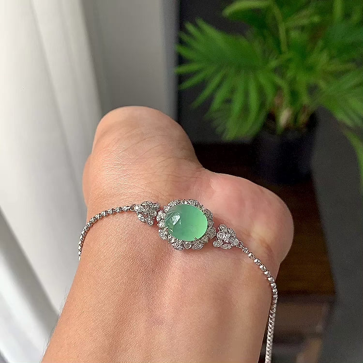 18k金钻镶糯冰种晴水蛋面手链(yc180240)