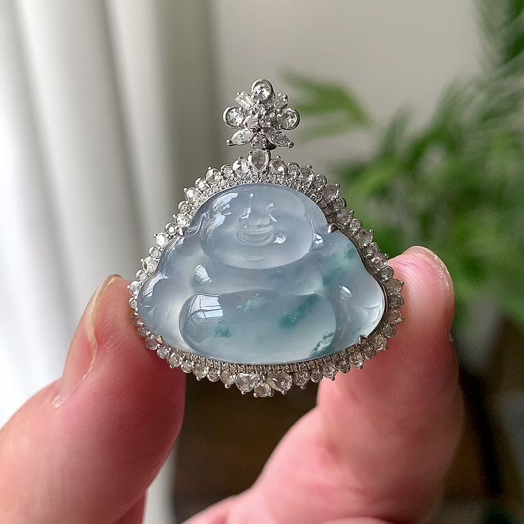 18K金钻镶糯冰种淡紫底飘花佛公吊坠(yc190851)