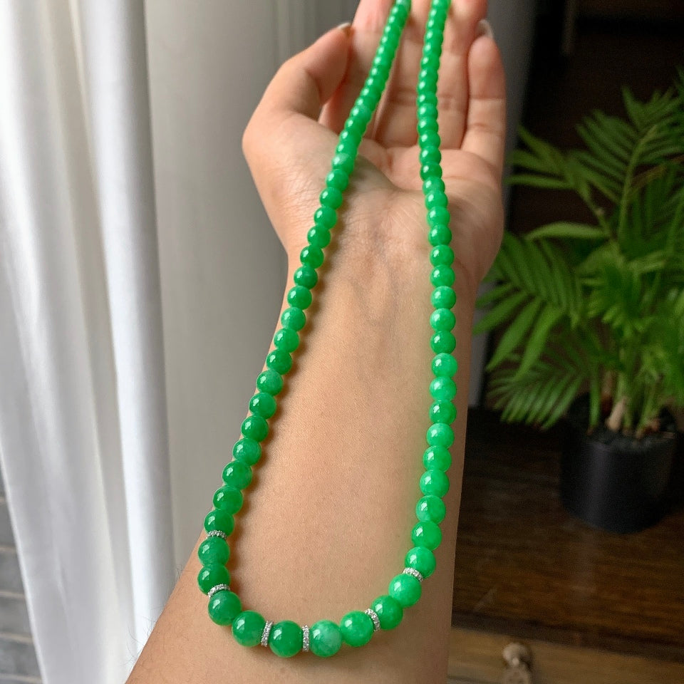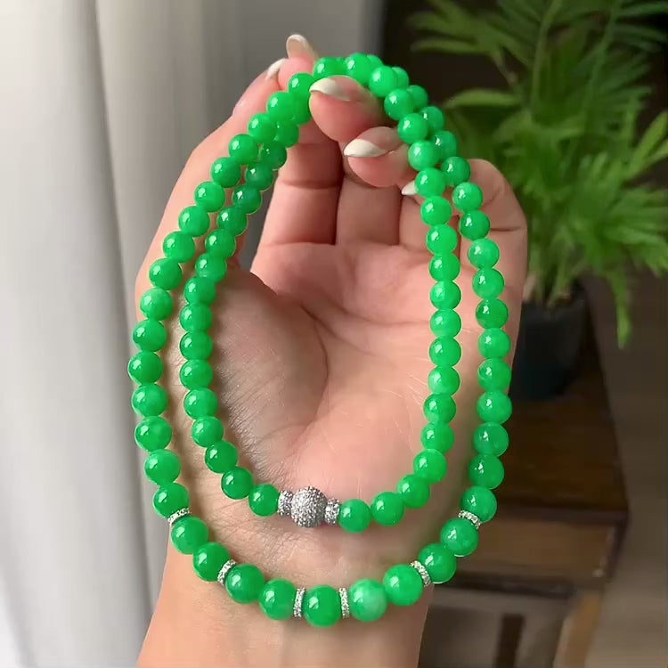 18K金钻镶糯冰种满绿圆珠项链/手链(两用款)81颗(yc081991)