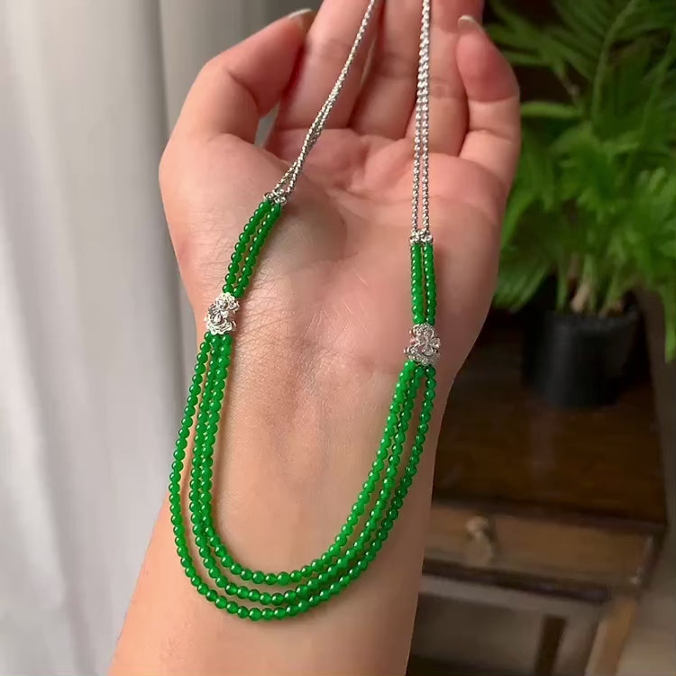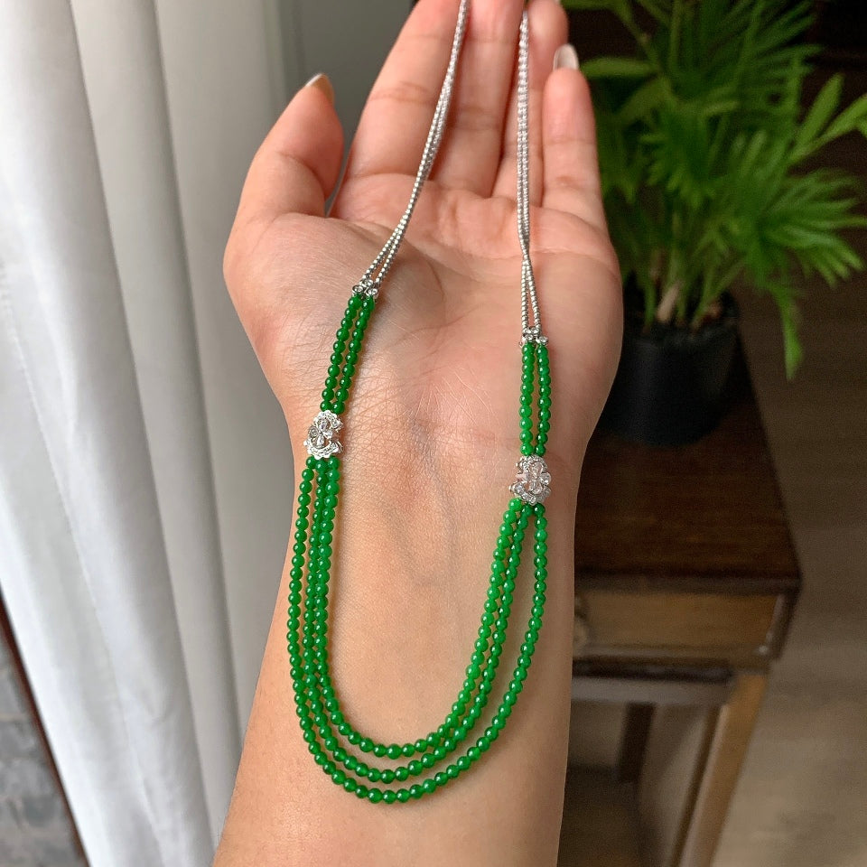 18K金钻镶糯冰种满绿小米珠链(yc082000)