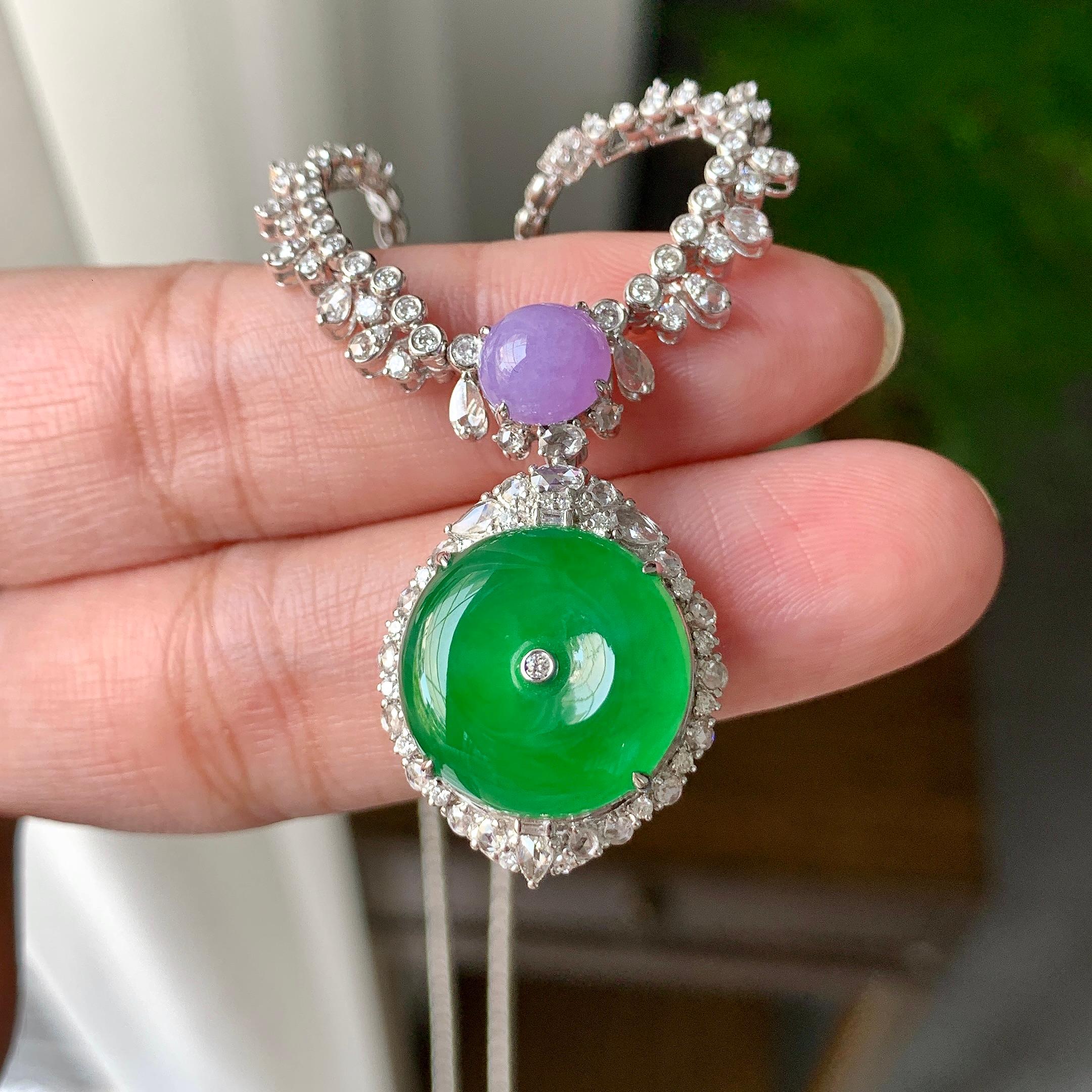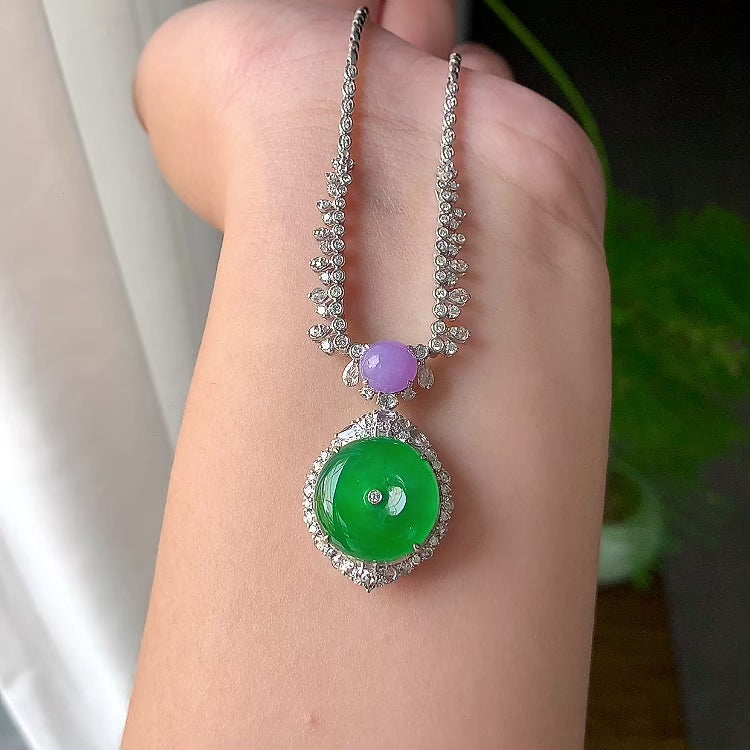18K金钻镶糯冰种满绿平安扣吊坠(yc191931)