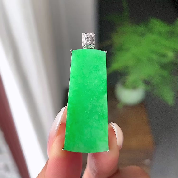 18k金钻镶糯冰种满绿无事牌吊坠(yc197703)