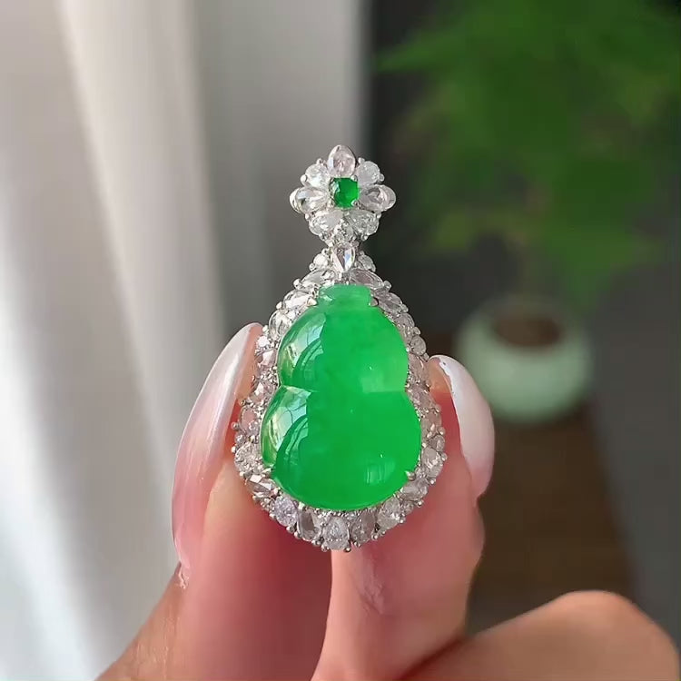 18k金钻镶糯冰种满绿葫芦吊坠(yc191915)