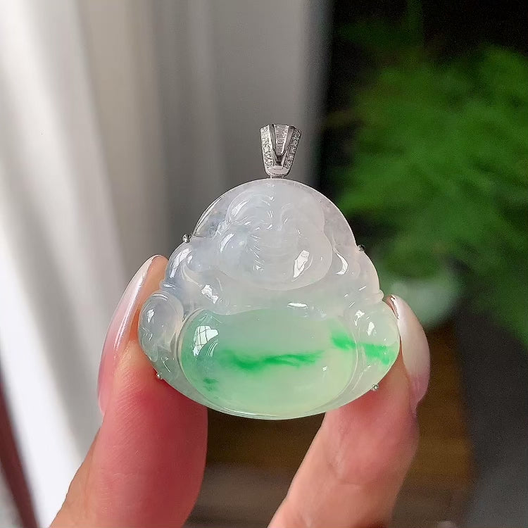 18k金钻镶糯冰种飘绿佛公吊坠(yc197680)
