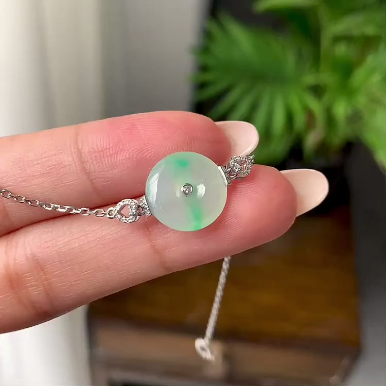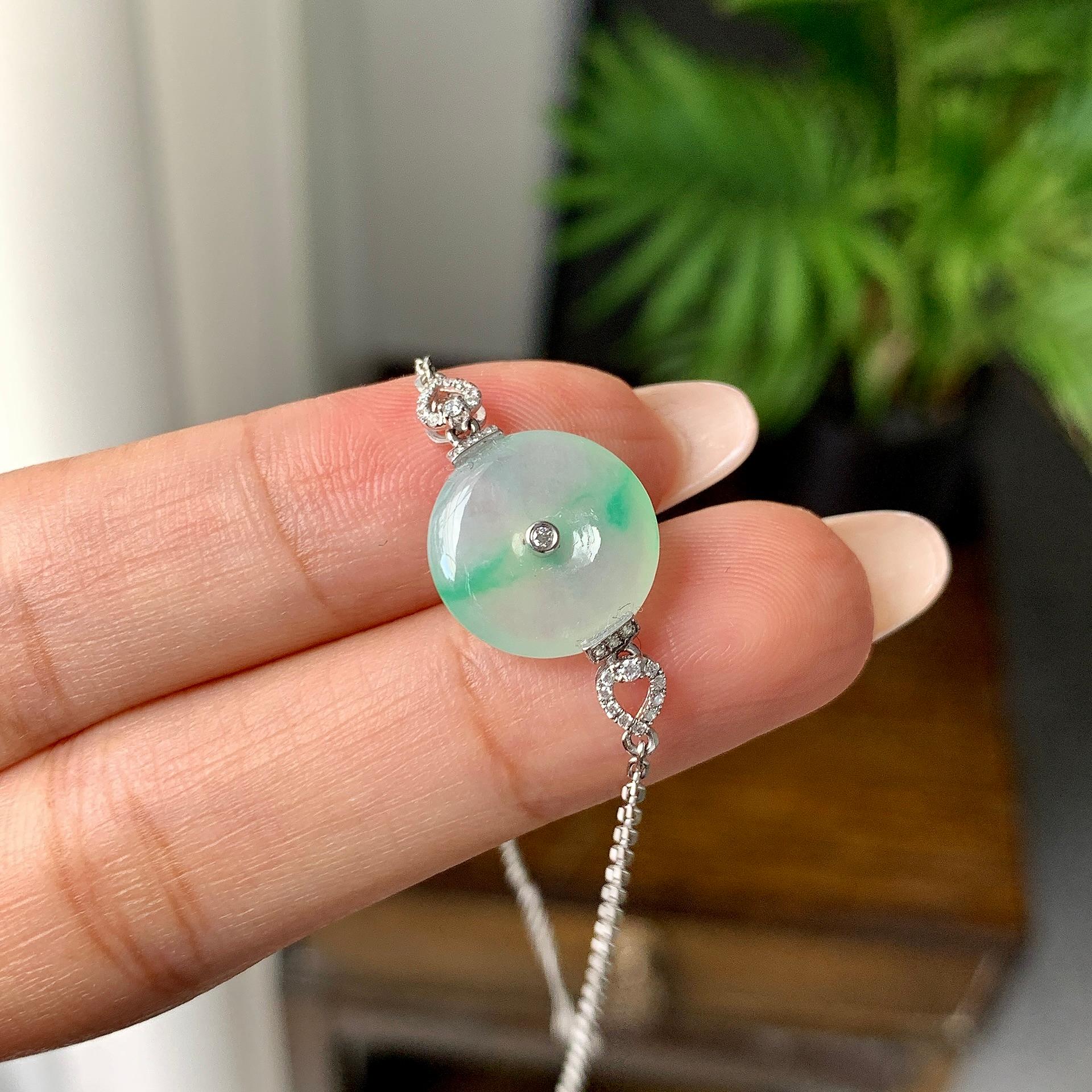 18K金钻镶糯冰种飘绿平安扣手链(yc184966)