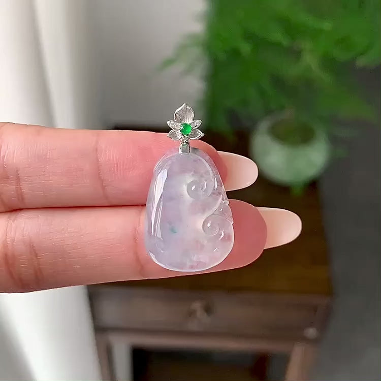 18k金钻镶糯冰种飘花如意吊坠(yc193372)