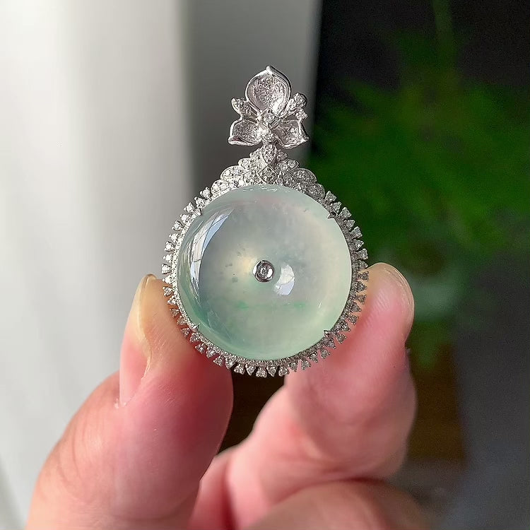 18K金钻镶糯冰种飘花平安扣吊坠(yc193355)