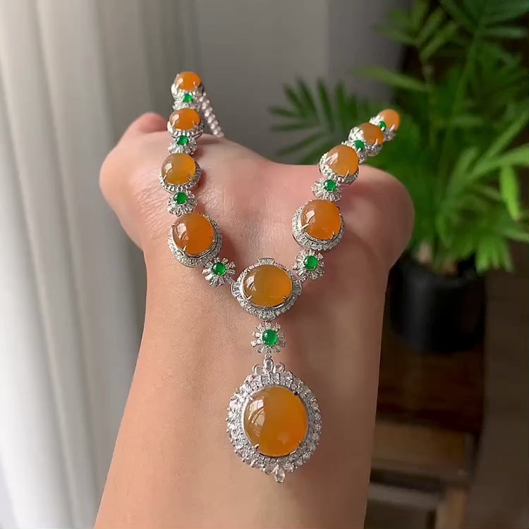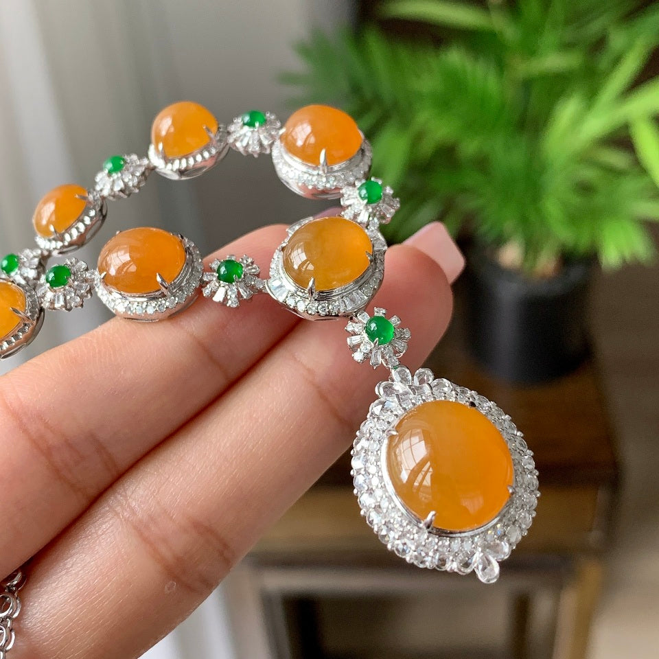 18k金钻镶糯冰种黄翡蛋面套链(yc096577)