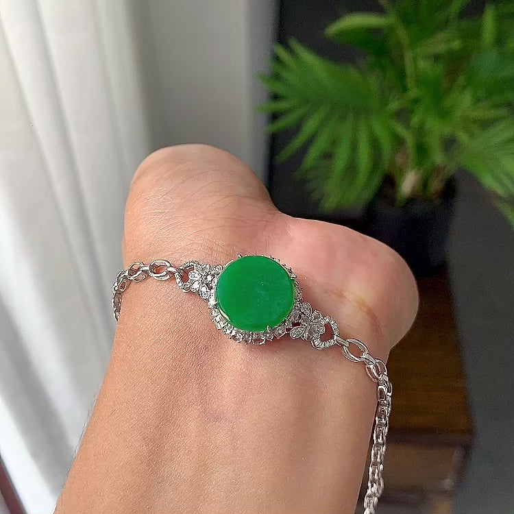 18k金钻镶细糯种满绿圆牌手链(yc180241)