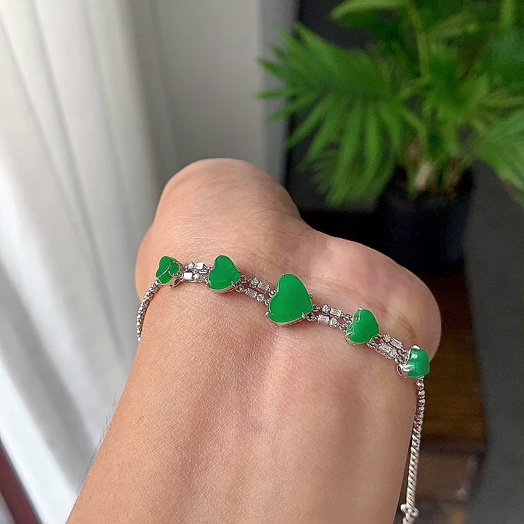 18k金钻镶细糯种满绿心形手链(yc180249)