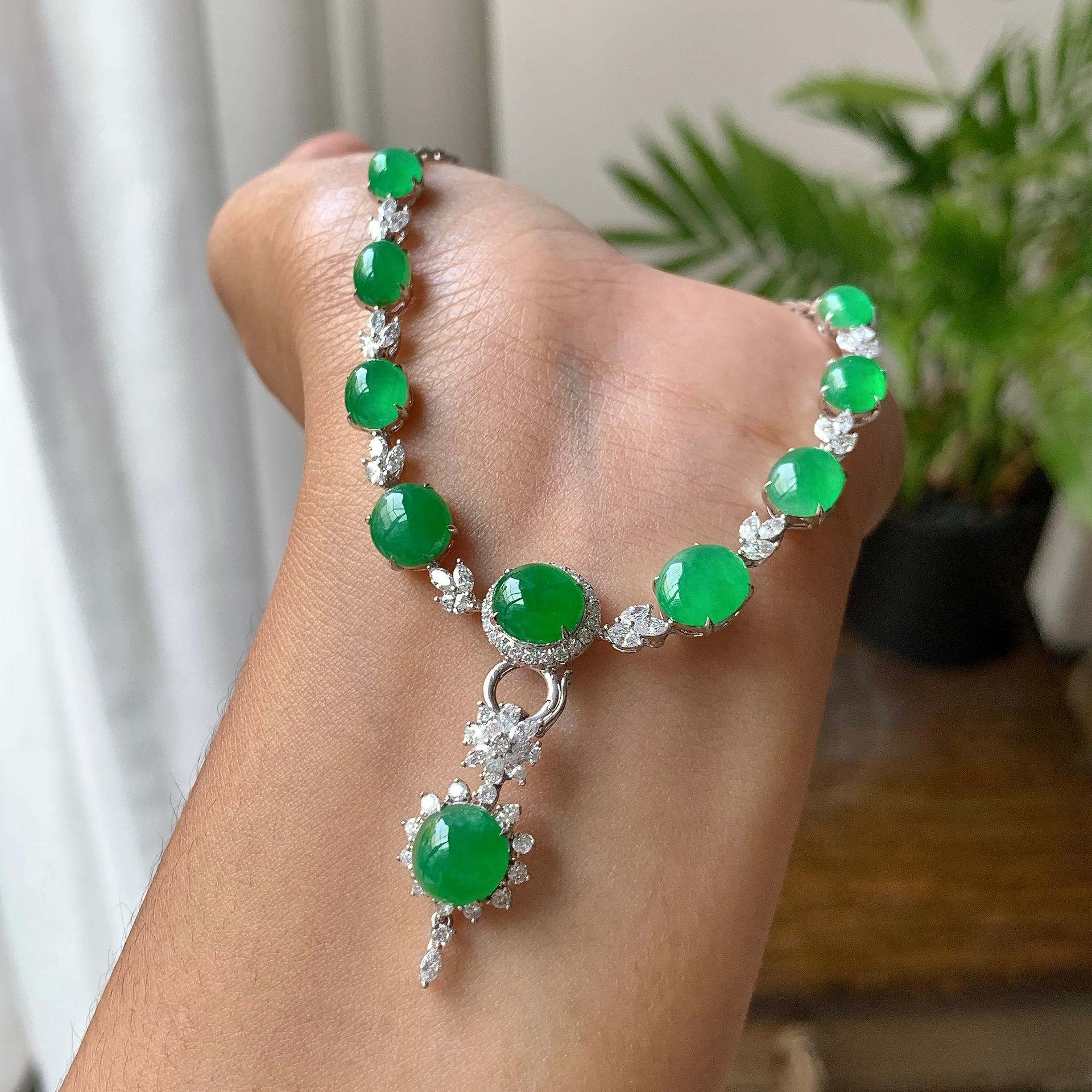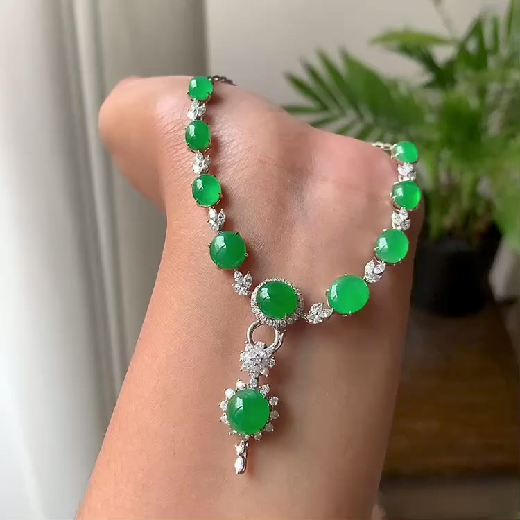 18K金钻镶细糯种满绿蛋面项链(yc189363)