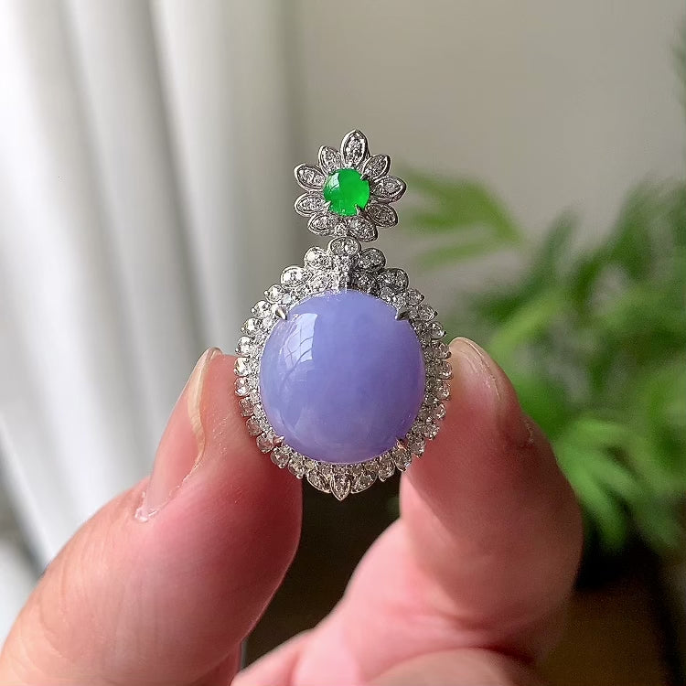 18K金钻镶细糯种紫罗兰蛋面吊坠(yc190839)