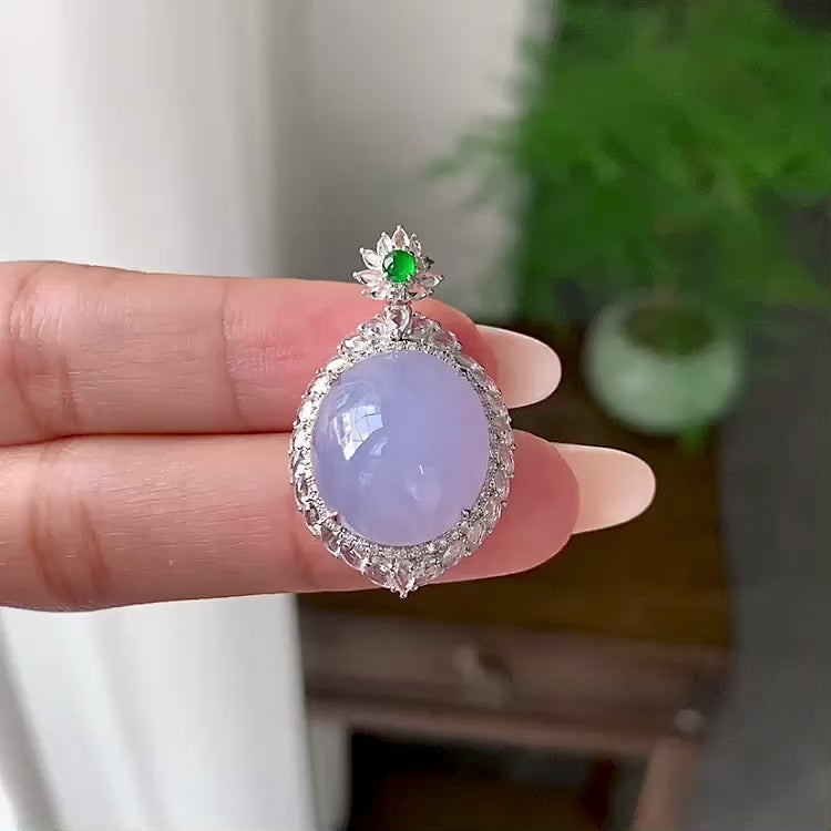 18k金钻镶细糯种紫罗兰蛋面吊坠(yc193366)
