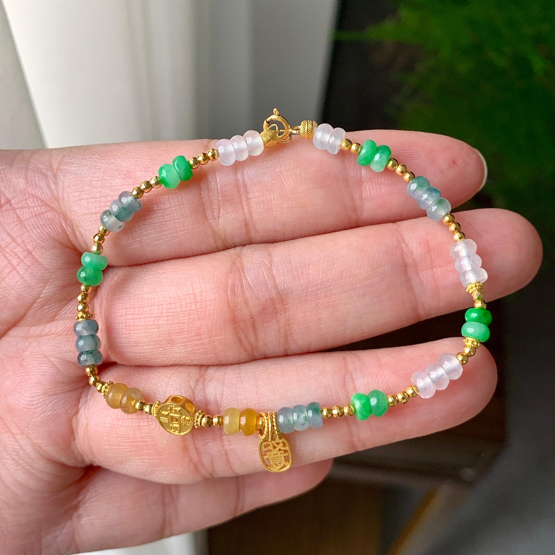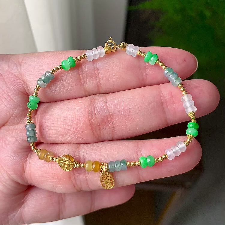 18K金镶糯冰种多彩算盘珠手链(yc191944)